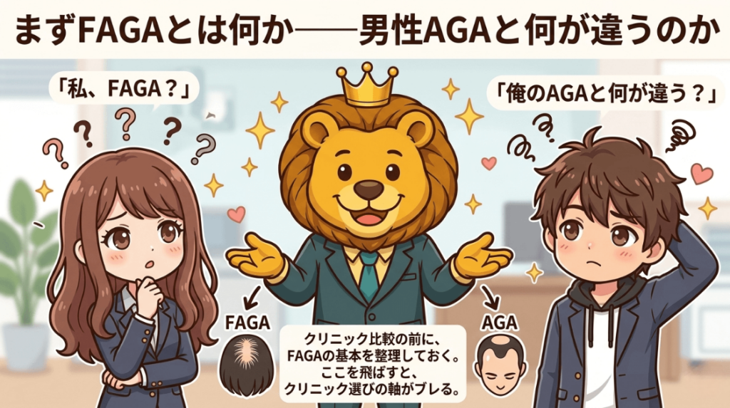 クリニック比較の前に、FAGAの基本を整理しておく。ここを飛ばすと、クリニック選びの軸がブレる。