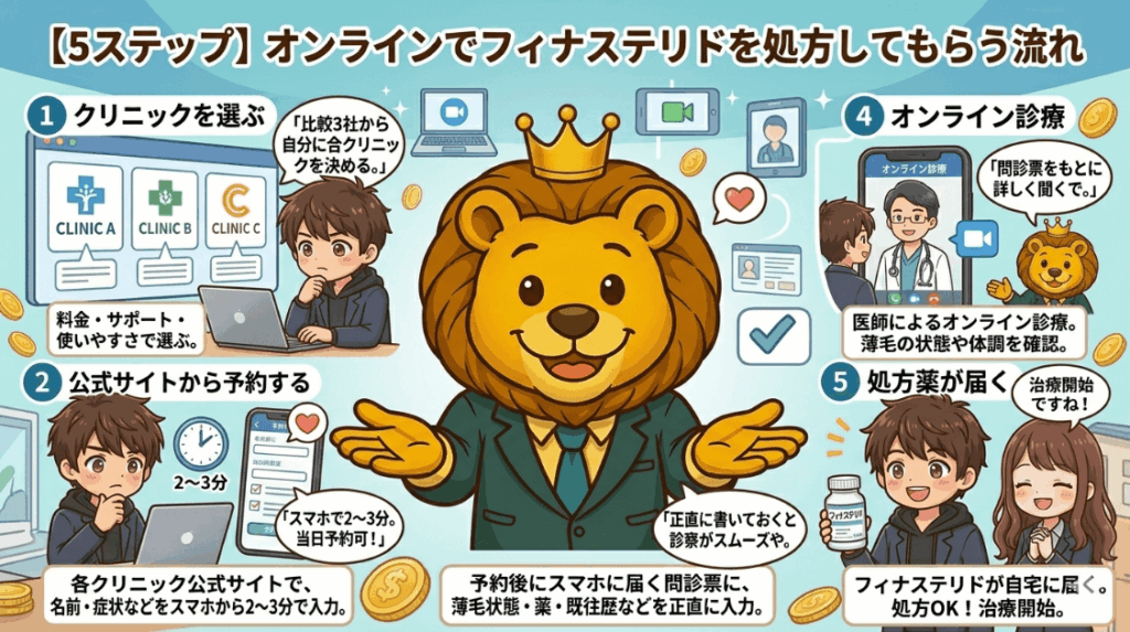 【5ステップ】オンラインでフィナステリドを処方してもらう流れ