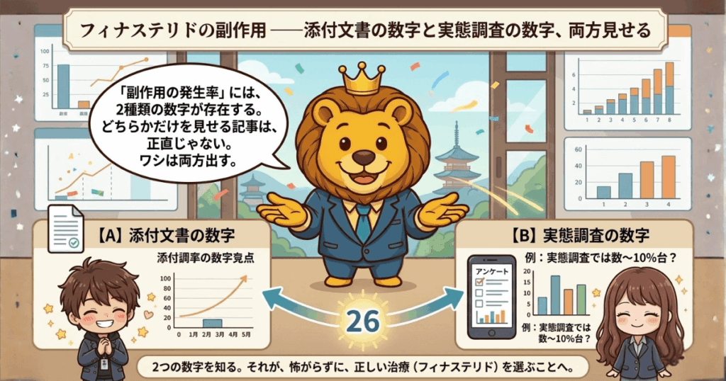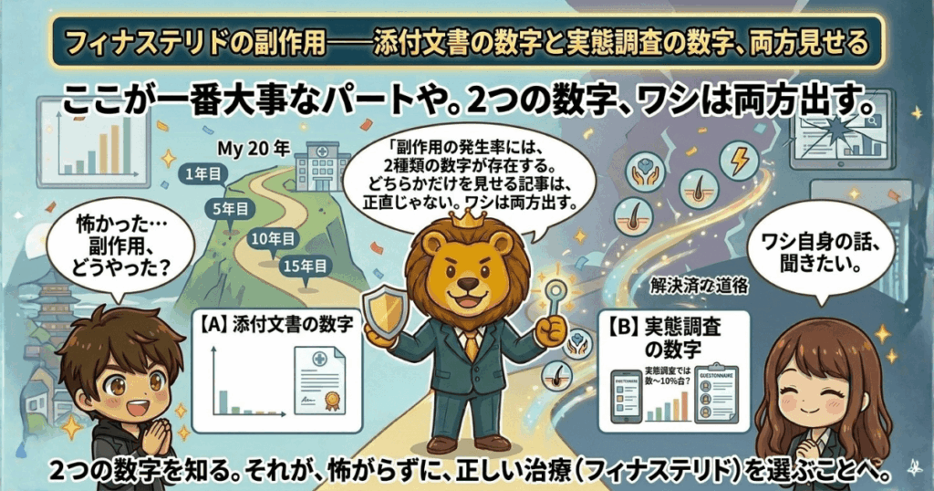 フィナステリドの副作用——添付文書の数字と実態調査の数字、両方見せる