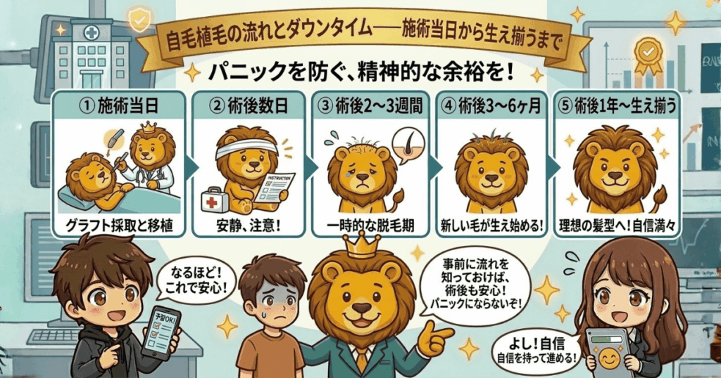 自毛植毛の流れとダウンタイム——施術当日から生え揃うまで