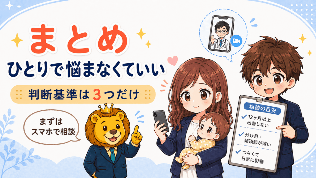 産後の薄毛でオンライン相談すべきかどうかの判断基準は3つだけ覚えておけばええ。